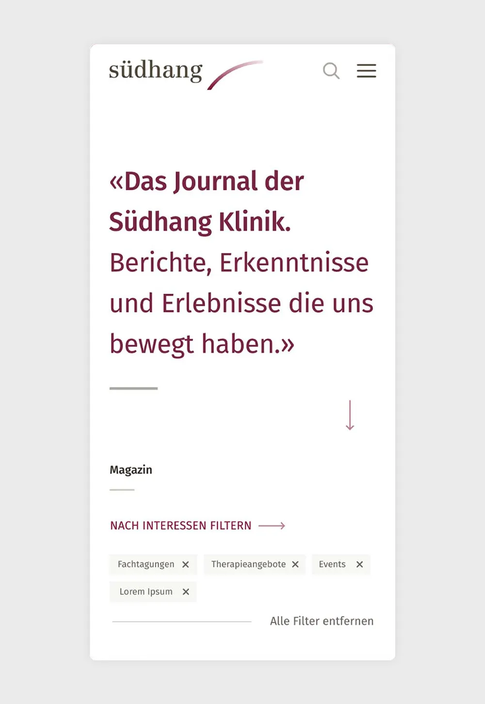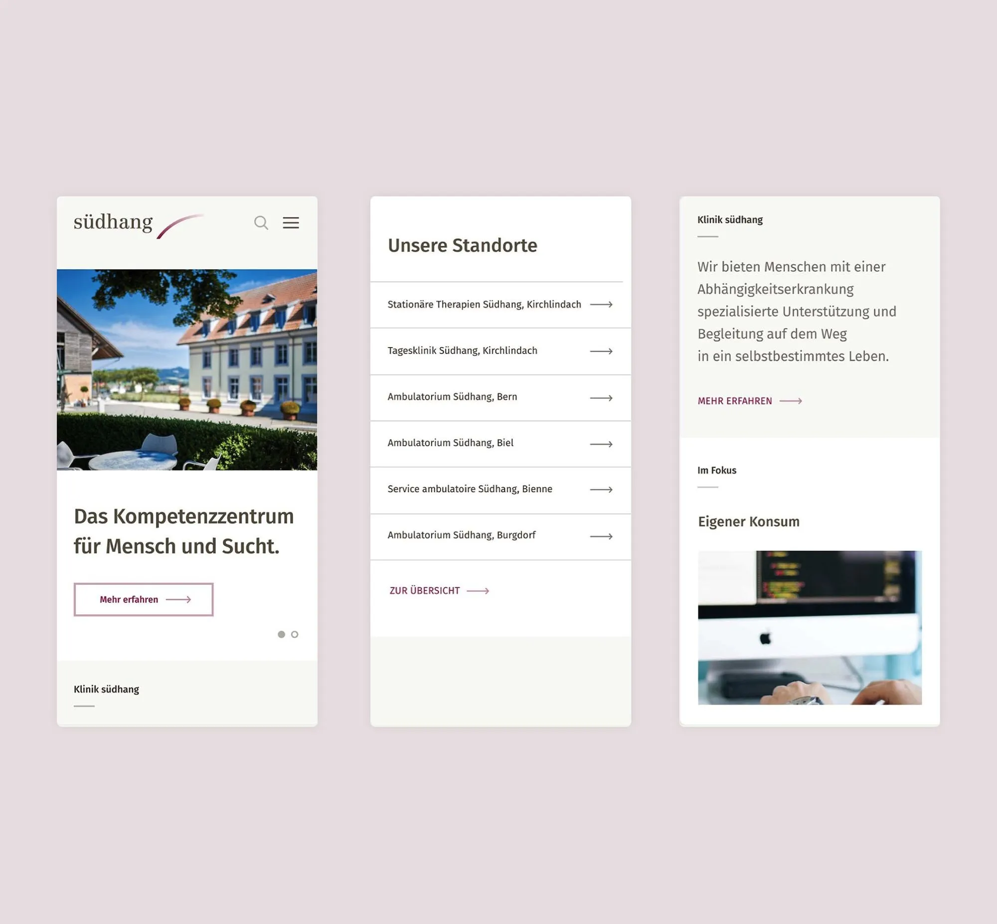 Für die Klinik Südhang haben wir eine Digital-Branding-Strategie entwickelt, die ihre Neupositionierung als führende Institution für Suchterkrankungen stärkt. Mit Websites, digitalen Magazinen und einer klaren Content-Strategie konnten wir die Ansprache verschiedener Zielgruppen optimieren und ein modernes Markenerlebnis schaffen.